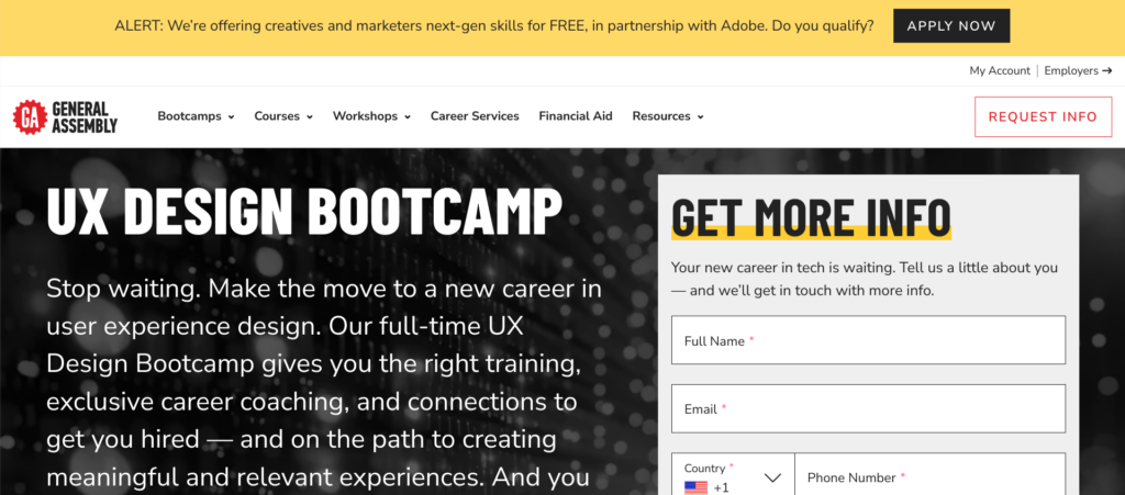 | General Assembly — UX Design Bootcamp — Best Alumni Network | $16,450 | ✓ No prerequisites required