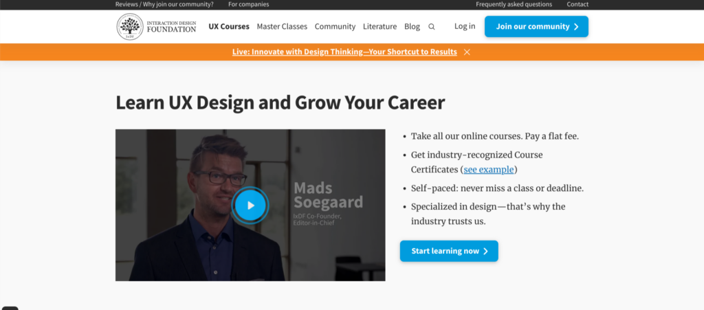 | Interaction Design Foundation — UX Courses — Most Affordable | Starts at $22/month | ✓ No prerequisites required