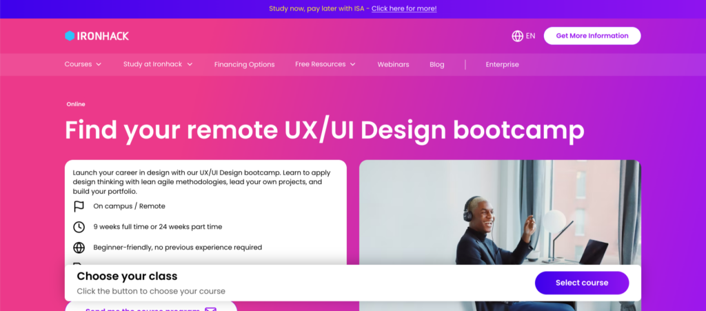 - Ironhack — Remote UX/UI Design Bootcamp — Most Beginner-Friendly Program