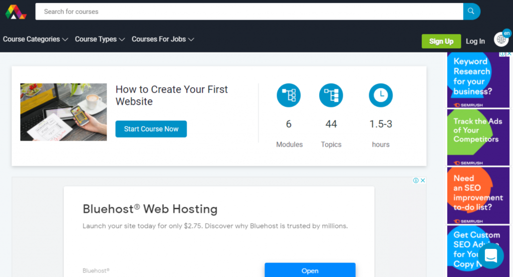 As suggested by the name, Coursera’s Web Design for Everybody: Basics of Web Development & Coding Specialization course focuses on covering all of the necessary skills needed to begin a new career in web design. This includes teaching students the basics of HTML, CSS, JavaScript, and responsive design. The University of Michigan offers the course, which makes it very reputable. Students conclude the course with a capstone project that requires them to create a high-quality professional portfolio that they can use during their job search. Post-completion, participants will receive a certificate to include on their resumes and share with prospective employers. Before signing up for a paid membership, you can take advantage of the seven-day free trial to determine whether or not this course is for you.