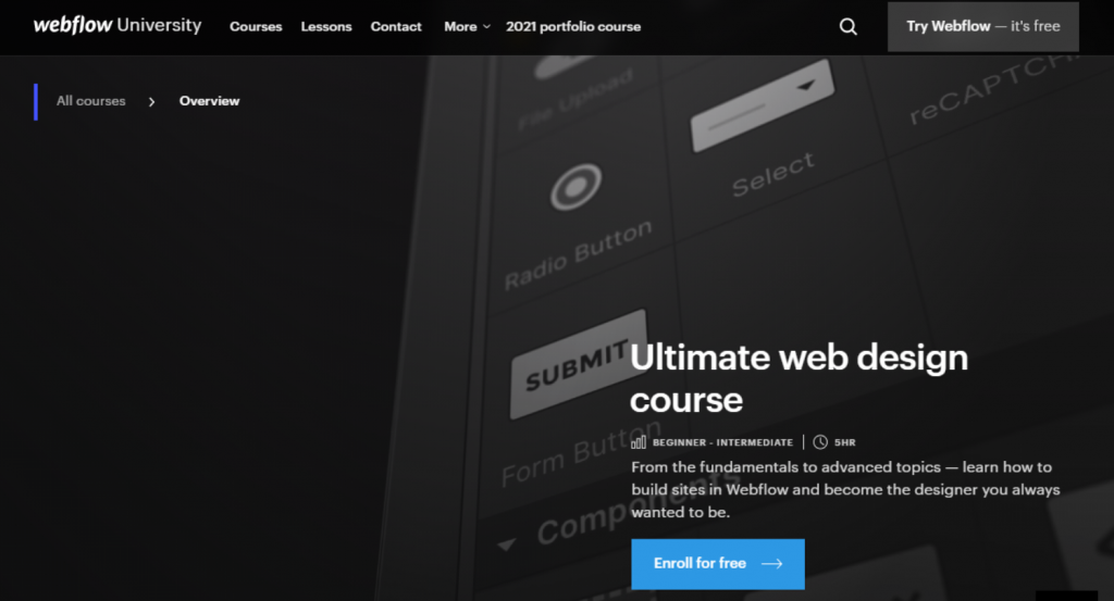 | Webflow University — Ultimate Web Design Course — Best Introduction to Web Design | Free | ✓ No prerequisites required