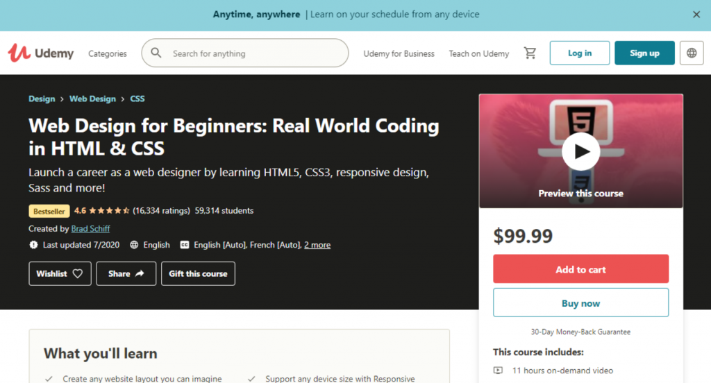 | Udemy — Web Design for Beginners: Real World Coding in HTML & CSS — Best for Beginners | $139.99 | ✓ No prerequisites required