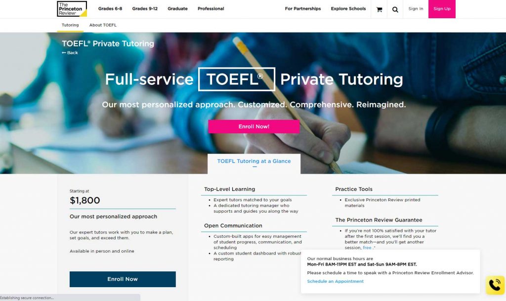 Pricing is important in choosing a TOEFL prep program, no matter your budget. Our list includes options for every price range: for budget-conscious learners, ETSx and TSTPrep offer free resources, affordable courses, and discounted one-on-one tutoring. These programs make effective TOEFL prep accessible without a hefty price tag. Kaplan provides an exceptional online course with extensive resources for those ready to invest more, making it a solid option if you’re seeking a comprehensive, higher-end study experience.