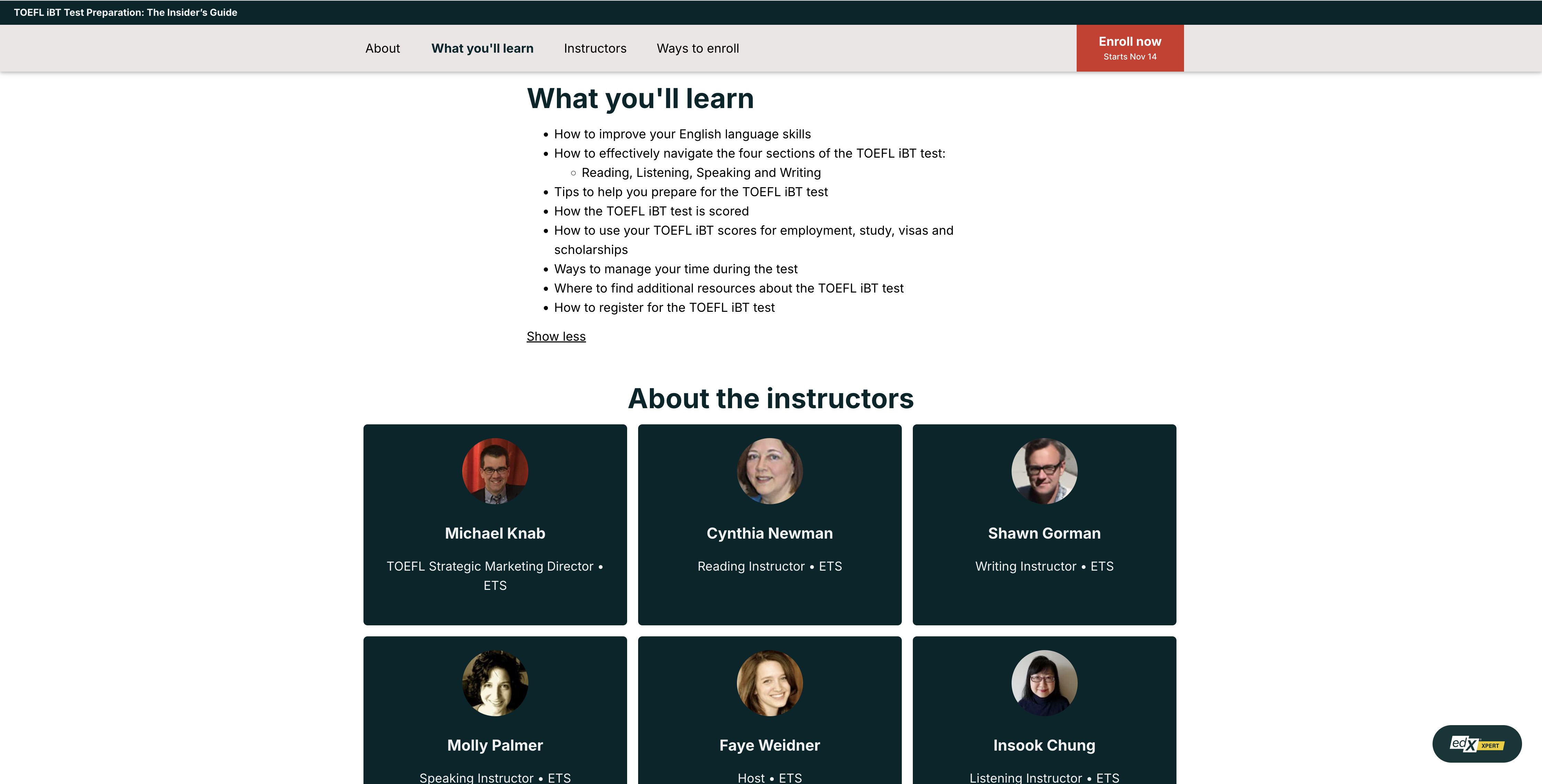 ETSx stands out not only for being affordable but also for being written and instructed by TOEFL test creators.