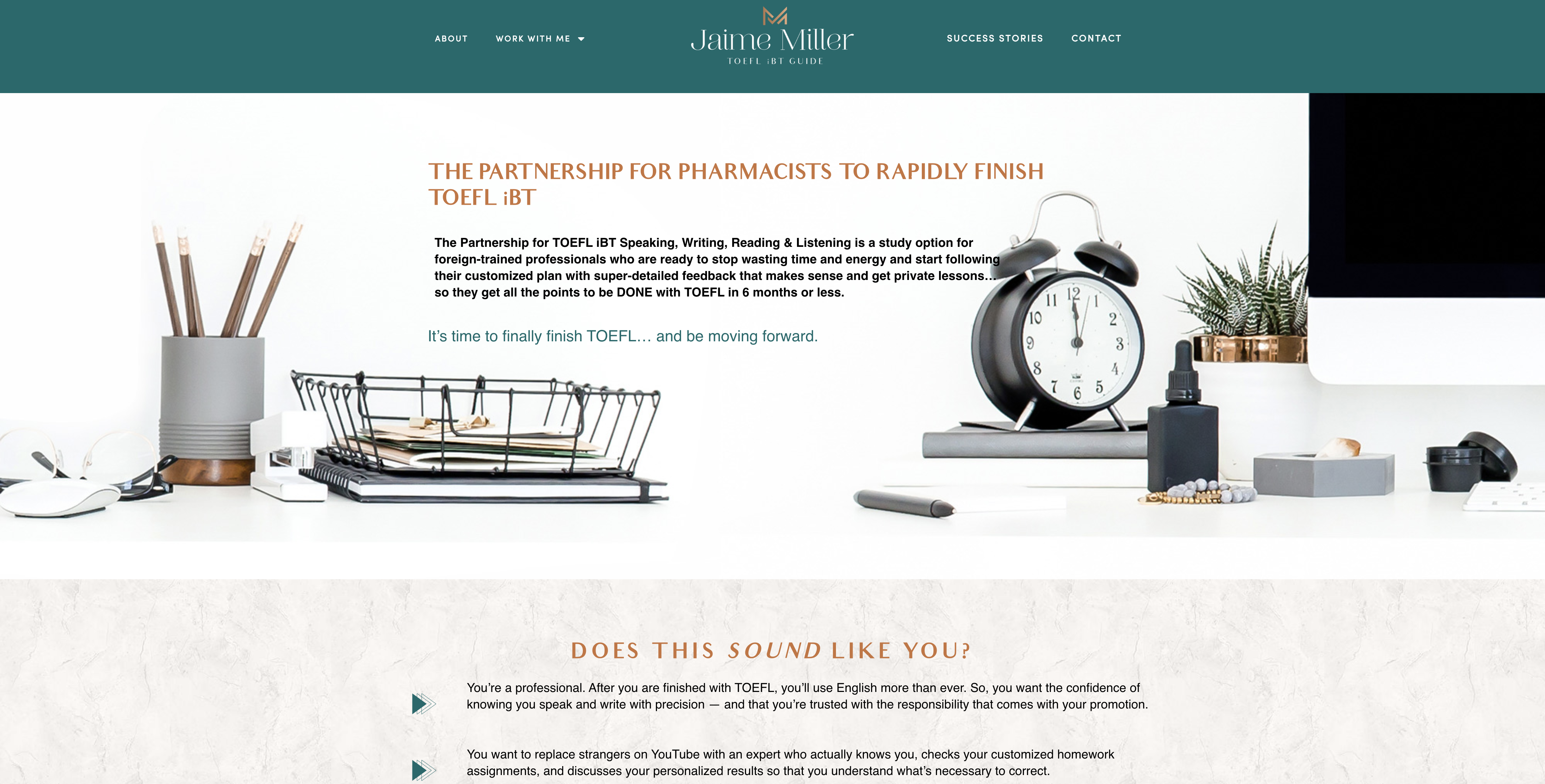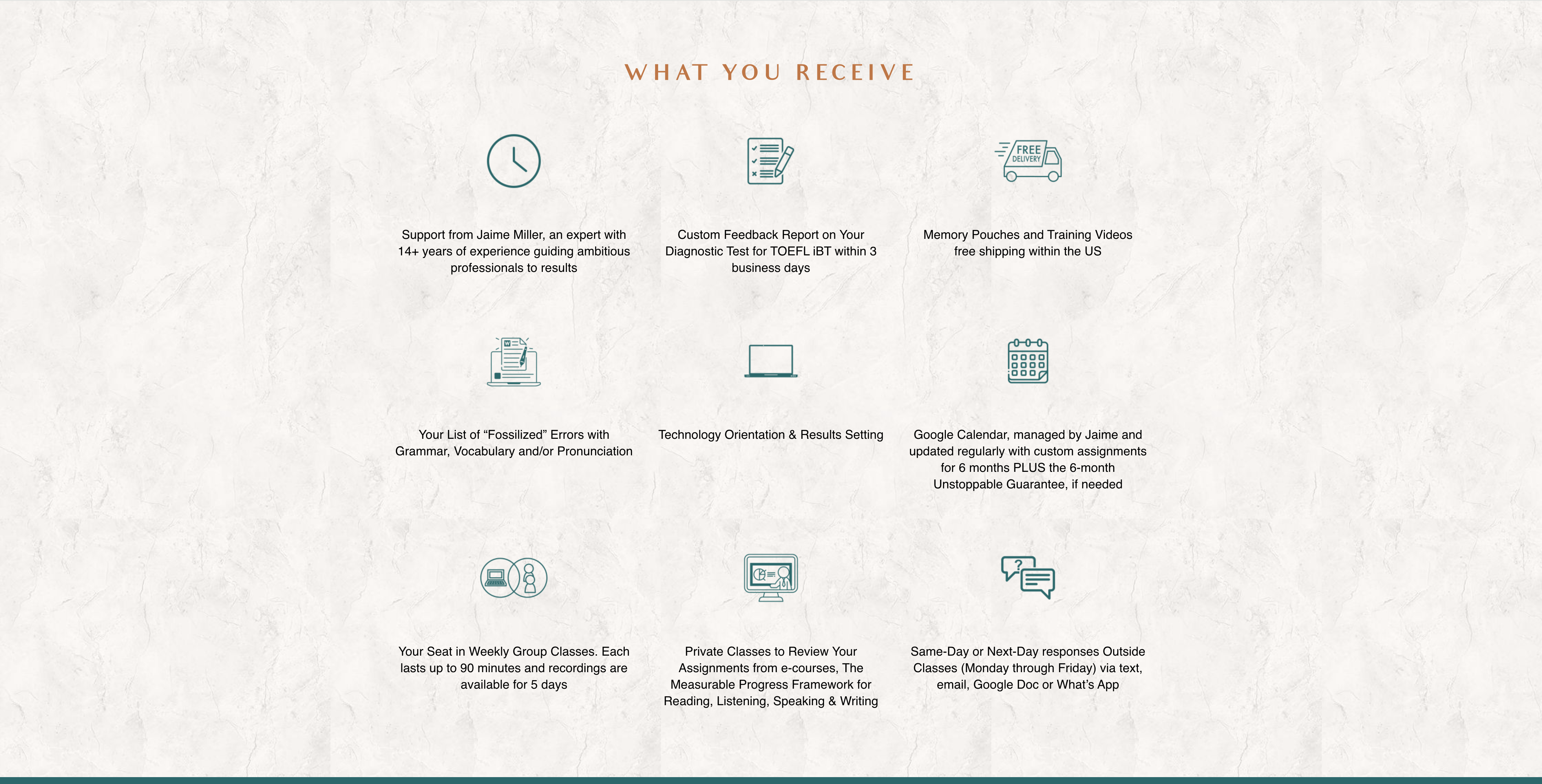 Jaime Miller Advising offers a highly personalized TOEFL test prep program designed for professionals who want to complete the test in less than six months.