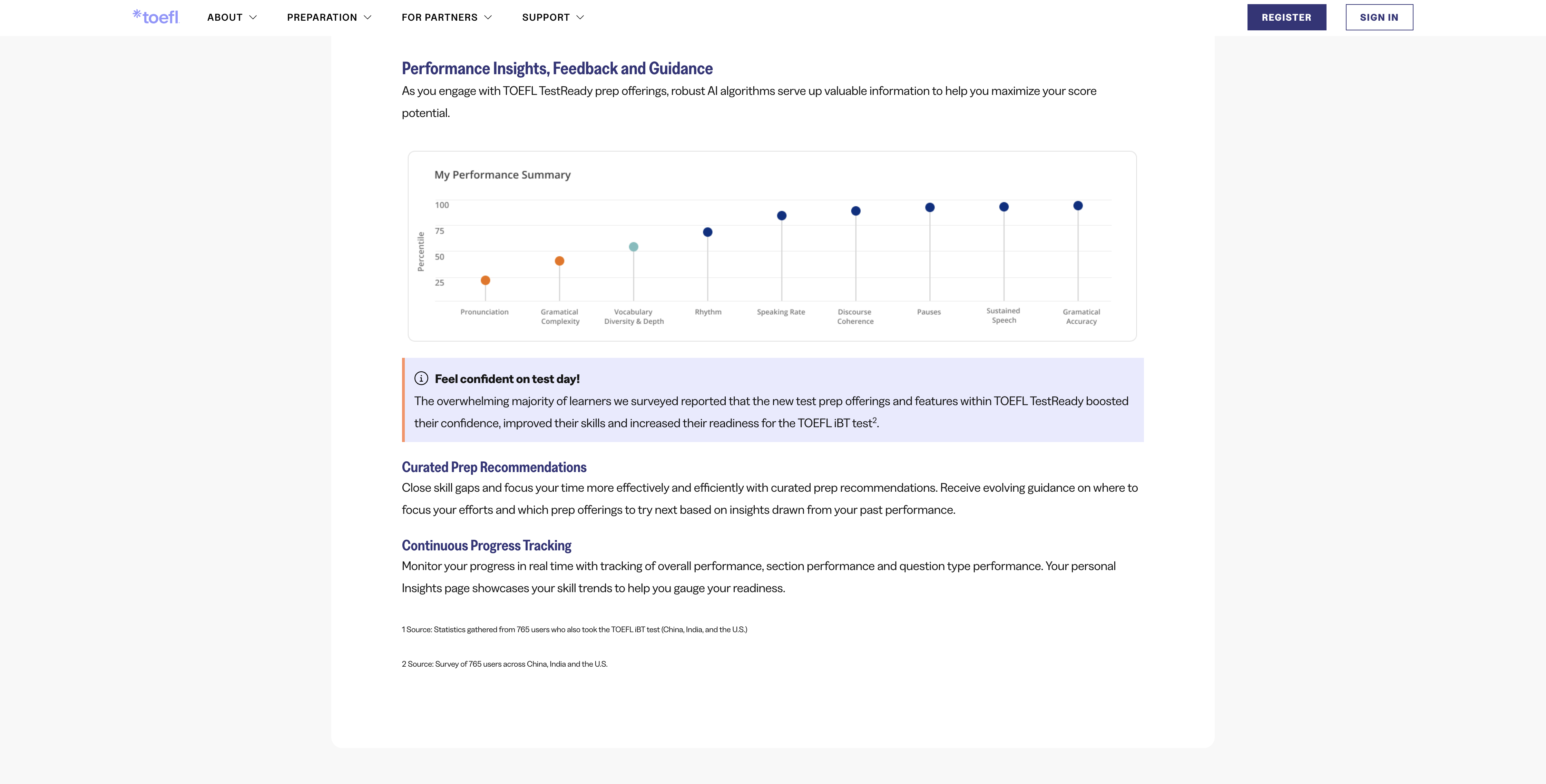 TOEFL TestReady is known for its high-quality practice tests, which mimic the actual TOEFL testing environment. These tests will help you become familiar with the test format and timing while providing test scores and a realistic assessment of your performance.