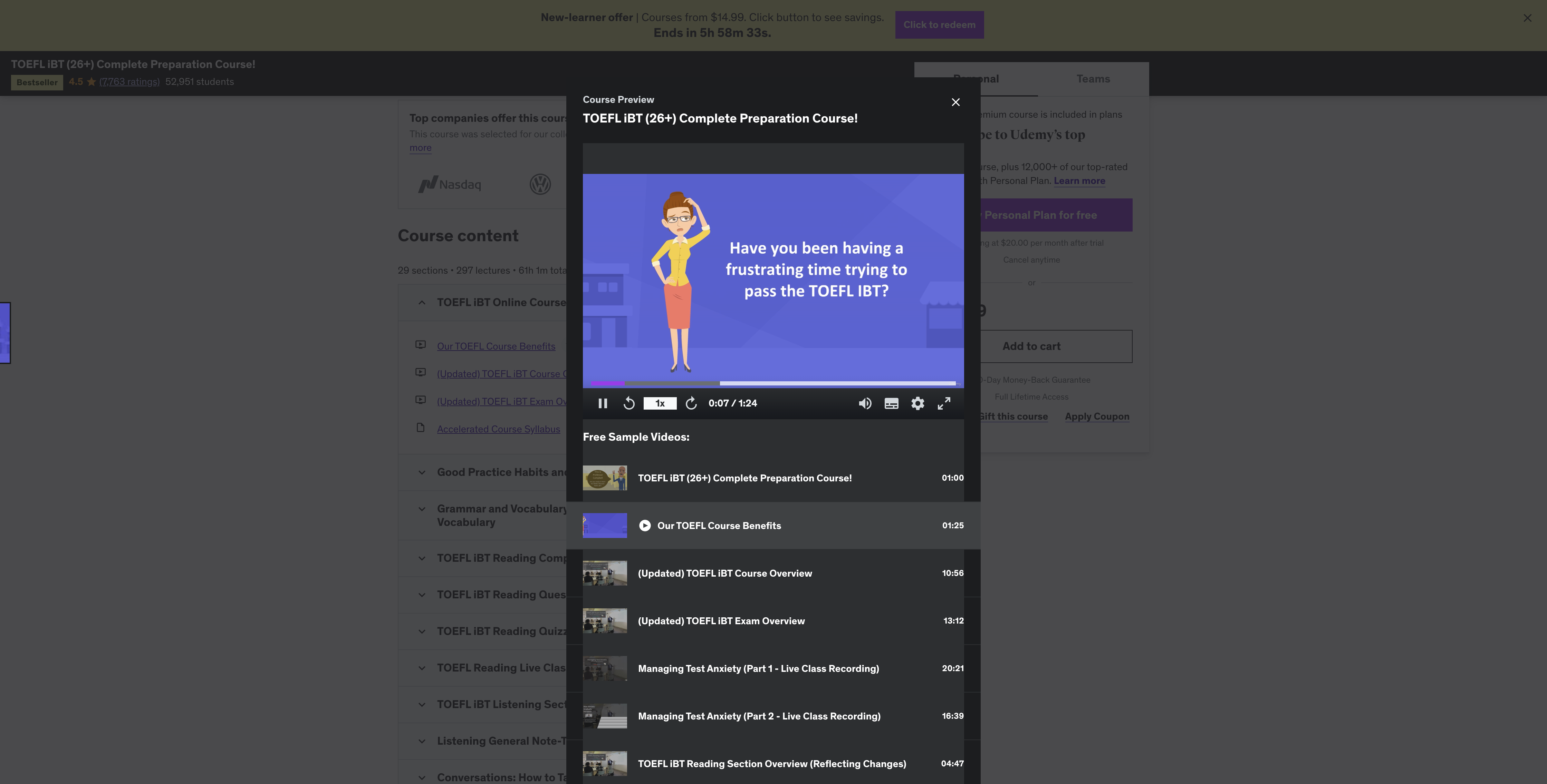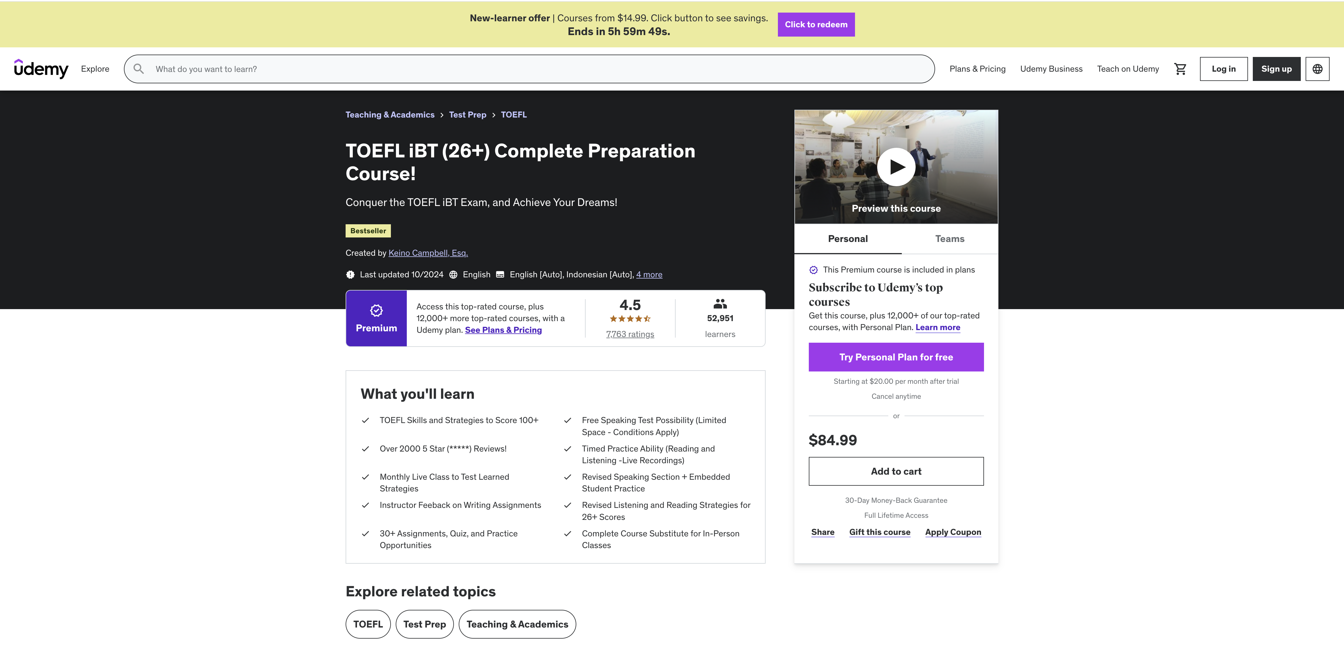| TOEFL iBT (26+) Complete Preparation Course | $84.99 |