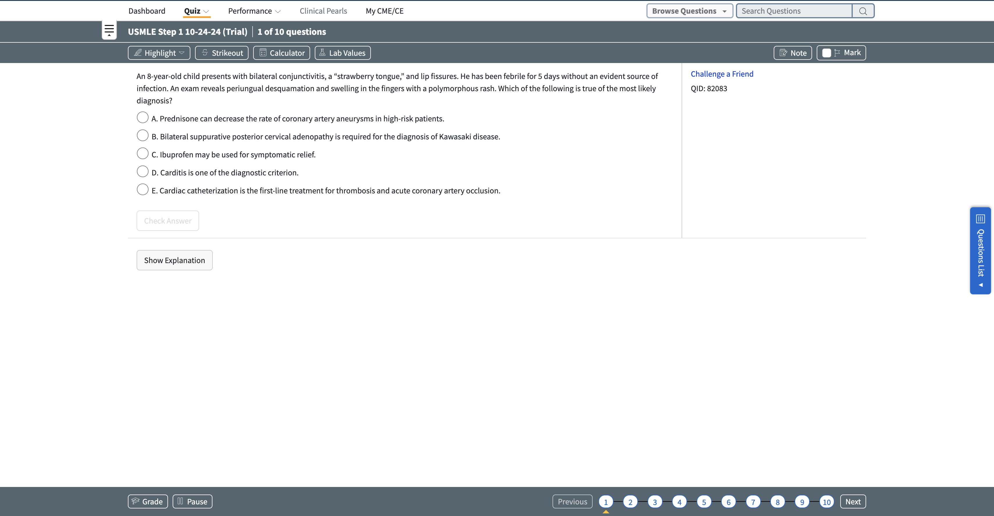 The free trial features a test-taking experience similar to the USMLE, preparing students for the actual test.