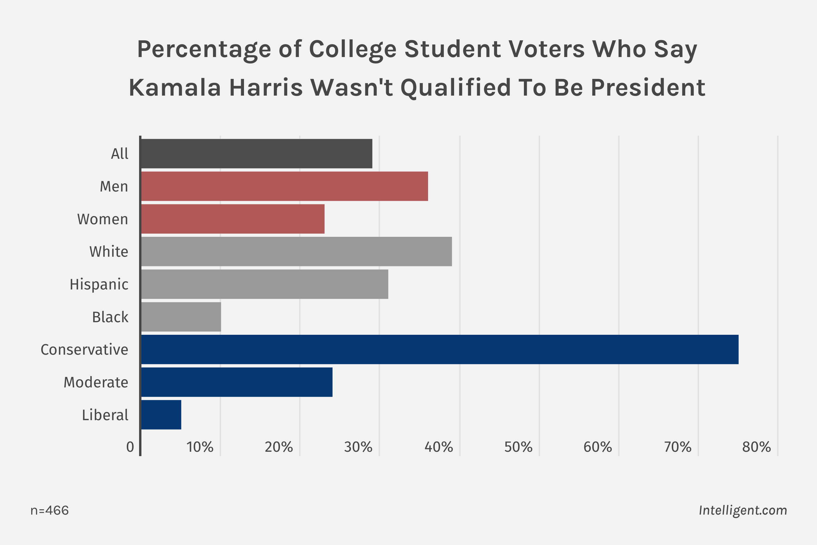 - 36% of male college student voters felt Kamala Harris wasn’t qualified to be president